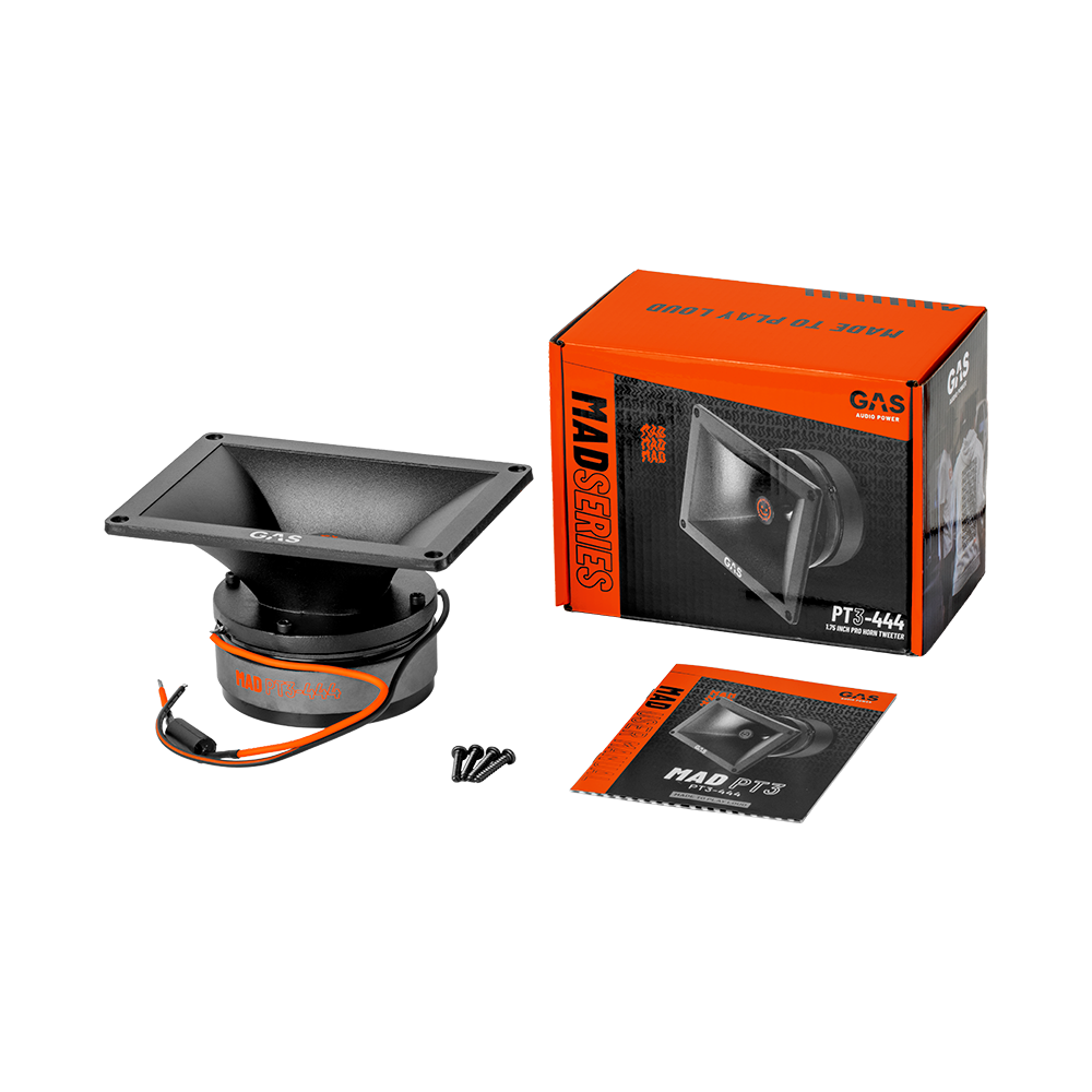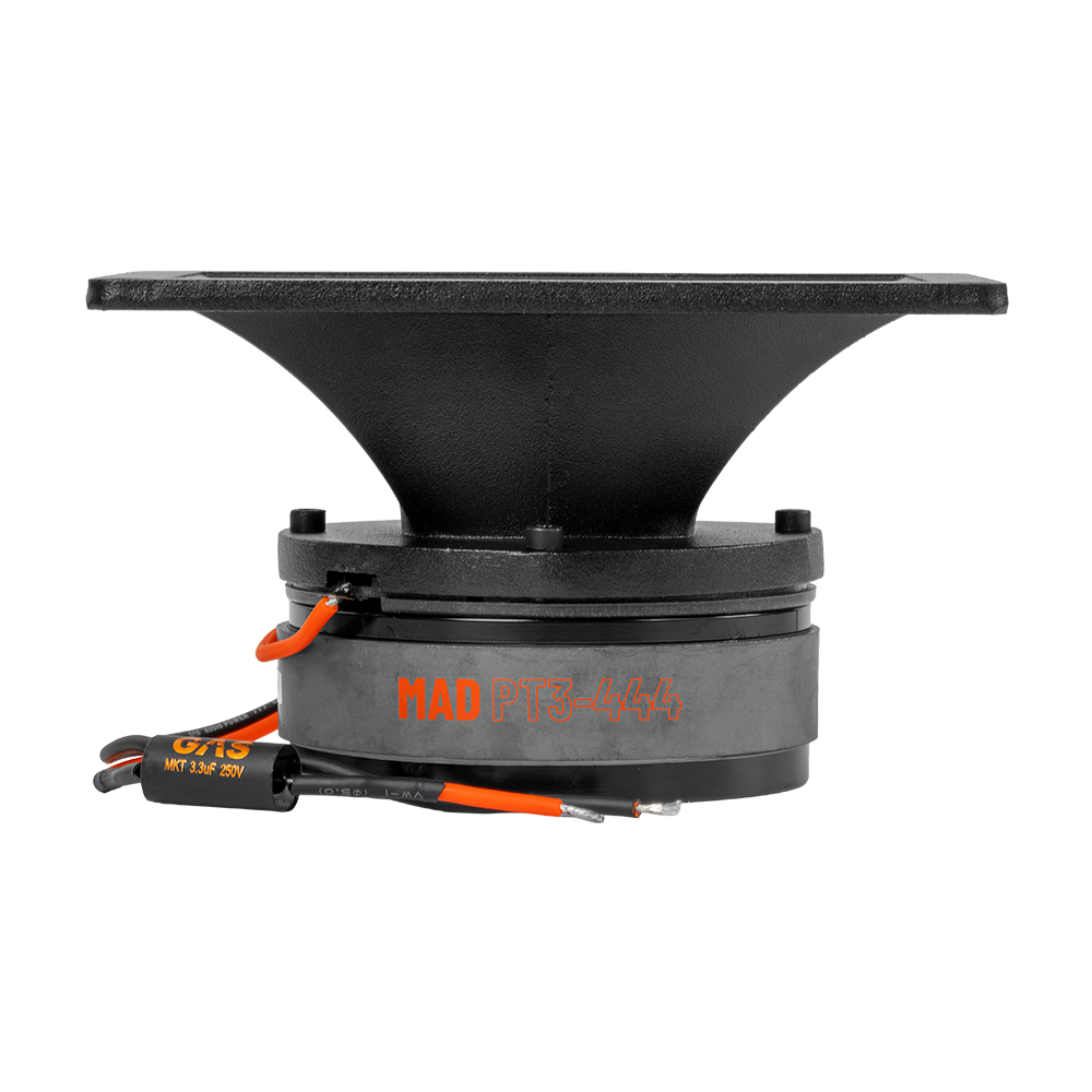 Make your friends green with envy with the MAD PT3-444, a car horn audio tweeter that is built for extreme performance. This tweeter’s designed to be LOUD, extremely cool-looking, and bold.