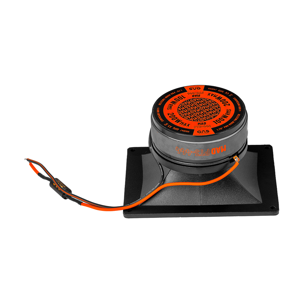 A 44mm / 1.75″ Kapton former with CCAW voice coil handles long sessions without flinching. The cast aluminum housing works as armor and heat sink, so the show keeps rolling when heads start turning. lnside sits a copper shorting ring that keeps distortion low when the volume climbs. Staying clean when things get wild, that’s the GAS way.